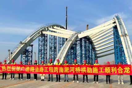 11月11日,隨著最后一段拱肋緩緩吊裝至合龍位置,安徽交建承建的廣德路項(xiàng)目跨南淝河大橋拱肋邊拱順利合龍。