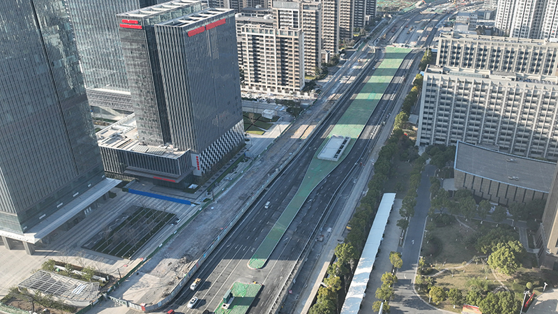 宿松路下穿地道全長(zhǎng)1251.3m,其中北側(cè)敞口段136.3m,暗埋段長(zhǎng)975m;南側(cè)敞口段長(zhǎng)140m,共42個(gè)節(jié)段。與繁華大道十字相交段的雙層下穿疊合段自3月14日開(kāi)挖至今,歷時(shí)283天,實(shí)現(xiàn)宿松路下穿地道結(jié)構(gòu)貫通,比計(jì)劃工期提前160天!