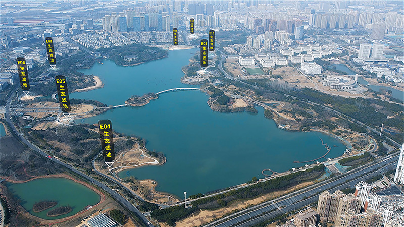 王建溝上游生態(tài)修復工程現(xiàn)場生態(tài)濾池布局圖(翡翠湖風景區(qū)內(nèi))