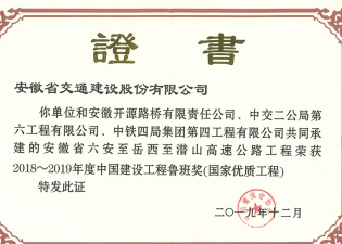 2018~2019年度國(guó)家優(yōu)質(zhì)工程獎(jiǎng)
